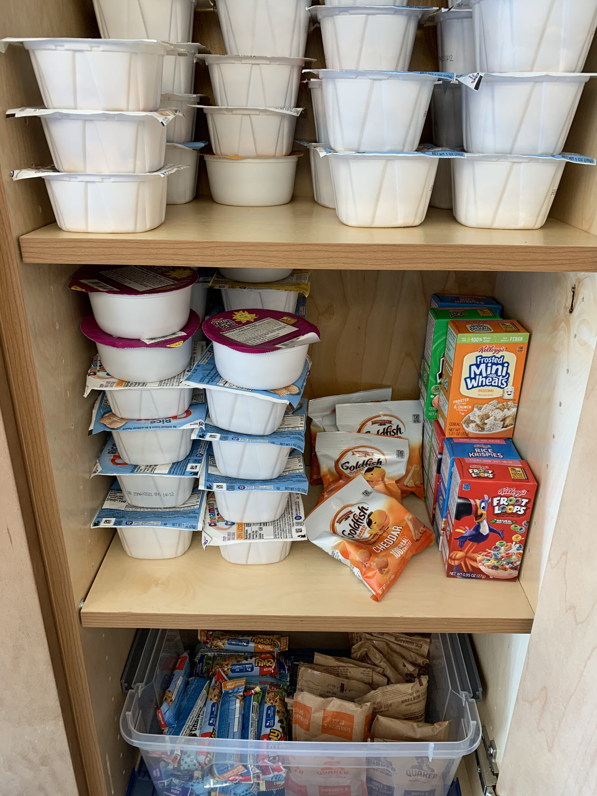 Another essential tool for supporting healthy families is making sure there’s always food available in a variety of options. Everyone knows that the kitchen is the heart of every home. At Family House, kitchens are the central space for families to find wholesome food and relieve some of the burdens of shopping. By design, the house has eight neighborhoods, each with a spacious kitchen surrounded by ten bedrooms. Every week the kitchens are stocked with fresh fruit from the Fruit Guys and fresh organic vegetables from Eatwell Farm. Breakfast foods are provided daily, so families always have access to milk, butter, eggs, fruit juices, cereal, pastries, oatmeal, yogurt, and more. Coffee is an essential breakfast item, and we’re very fortunate to have coffee provided to Family House by Elliot Katz and Peerless Coffee. The kitchen pantries are also regularly stocked with a variety of quick-to-prepare food items for families who often only have a short window of time to make a meal before they head back to the hospital. You can always find pasta, pasta sauce, mac and cheese, canned soups, chili, canned veggies, rice, beans, cooking oil, and more in our pantries. Parents have said that it’s been an enormous relief to show up at Family House in the middle of the night after a long plane trip and not have the added stress of finding a grocery store. Food is meant to be nourishment, but it’s also essential as a source of comfort, especially when faced with the possibility of going hungry.