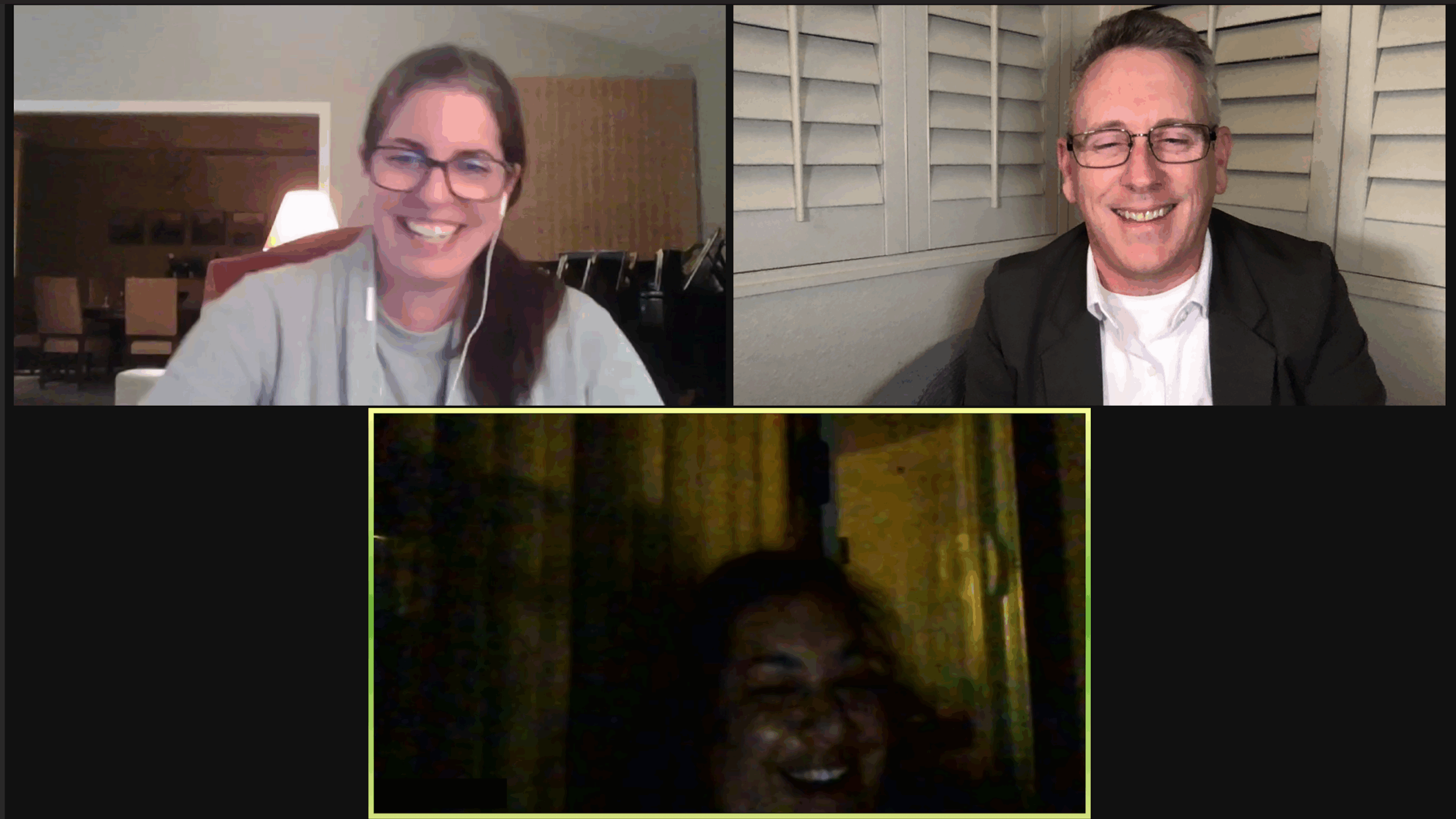 Social Worker Élan Slavin (left), Director of Family Services Paul Goold (right), talk on Zoom with Mason during a virtual support session.