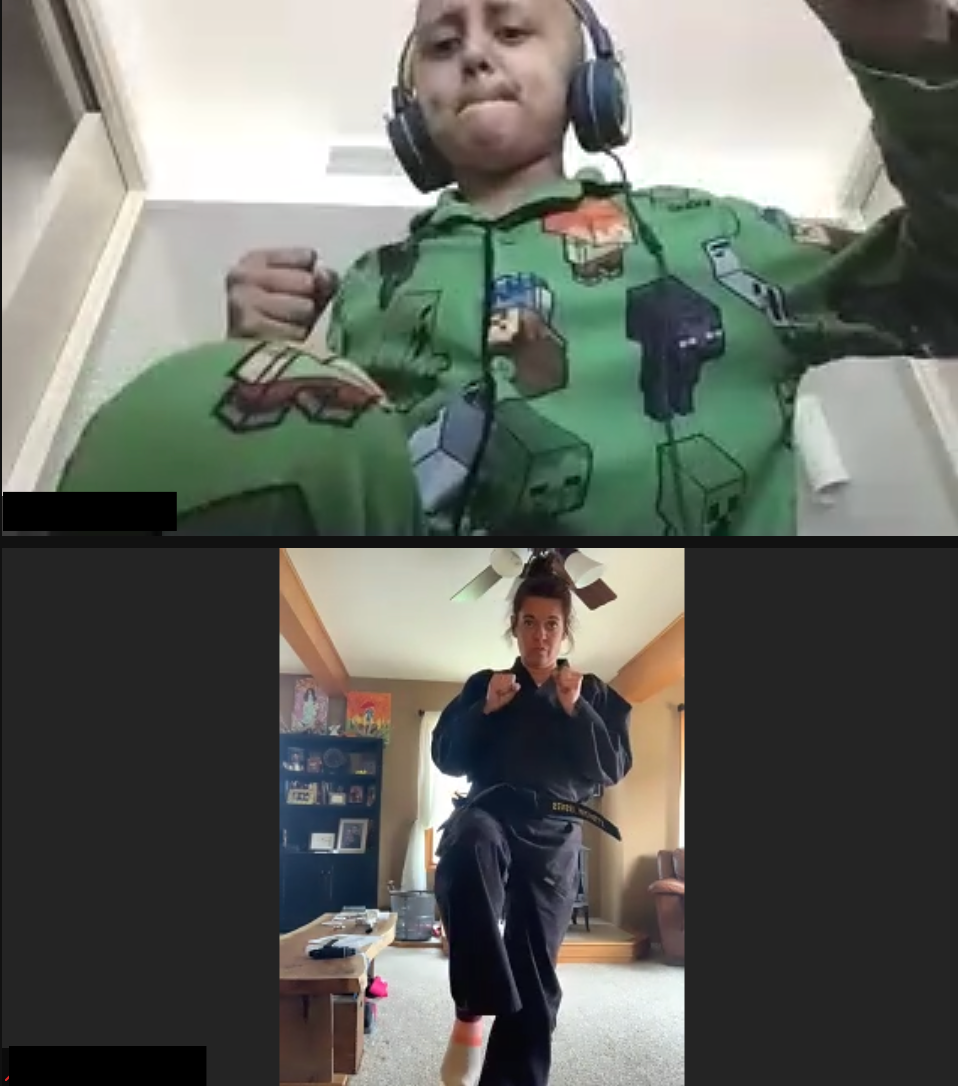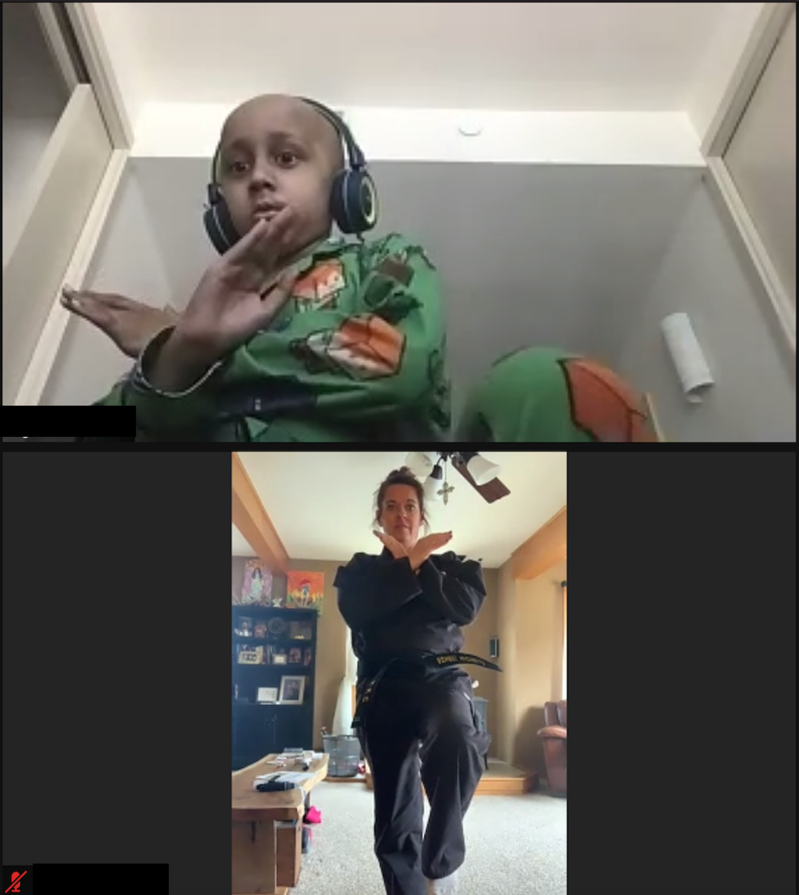 In June of 2020, with the support of Nancy and Stephen Grand, Family House facilitated the first Kids Kicking Cancer Martial Arts Therapy Session in Northern California. Although we had planned to have Martial Arts Therapy in person with the patients and siblings at Family House, the pandemic had other plans, so we opted for Martial Arts Therapy on Zoom instead. Kids Kicking Cancer Founder and Director Rabbi G has created an effective and practical martial arts and mindfulness training program to help children manage stress through visualization and breath control. Martial arts for young patients offer a sense of control in moments of their lives that can feel out of control. Sensei Richard, Sensei Keith, and Sensei Michelle teach class participants how to control stress with visualization exercises that focus their thoughts on breathing in light and blowing out darkness. The participants are then asked to become teachers of these powerful breathing techniques, giving them a sense of empowerment. Martial Arts Therapy sessions are available every Tuesday at 2:00 pm and Saturday at 11:00 am. Sessions run for about 30 minutes and are interactive and engaging. We’re so thankful to support our families with this program and look forward to hosting in-person Martial Arts Therapy sessions once social distancing guidelines are changed to allow group activities. Siblings are welcome to join, and if you’re interested in learning more, contact Paul.