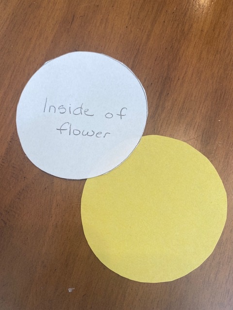 1. Place the “Inside of the flower” template on top of the colored paper you have chosen and cut out the inside of the flower