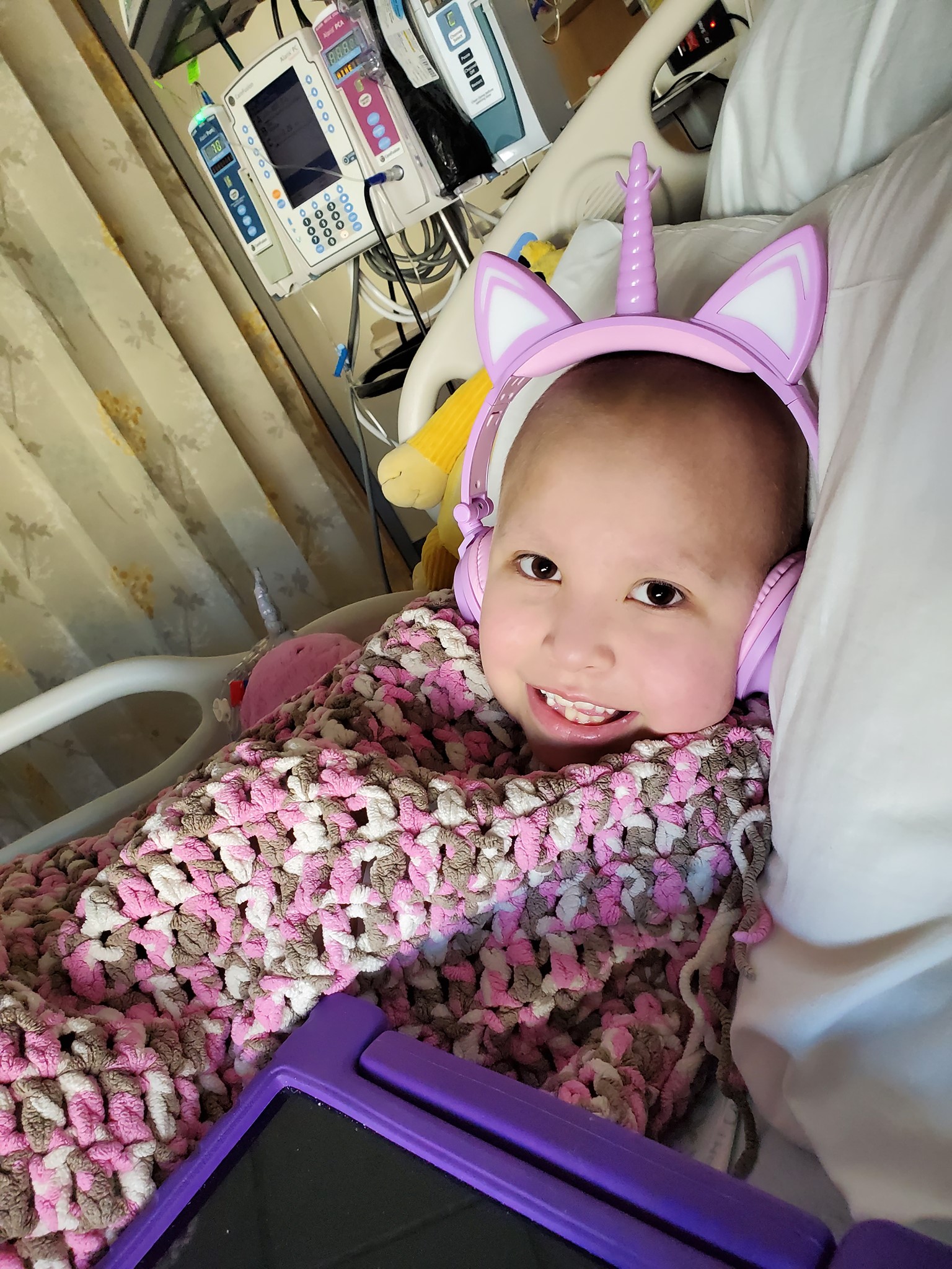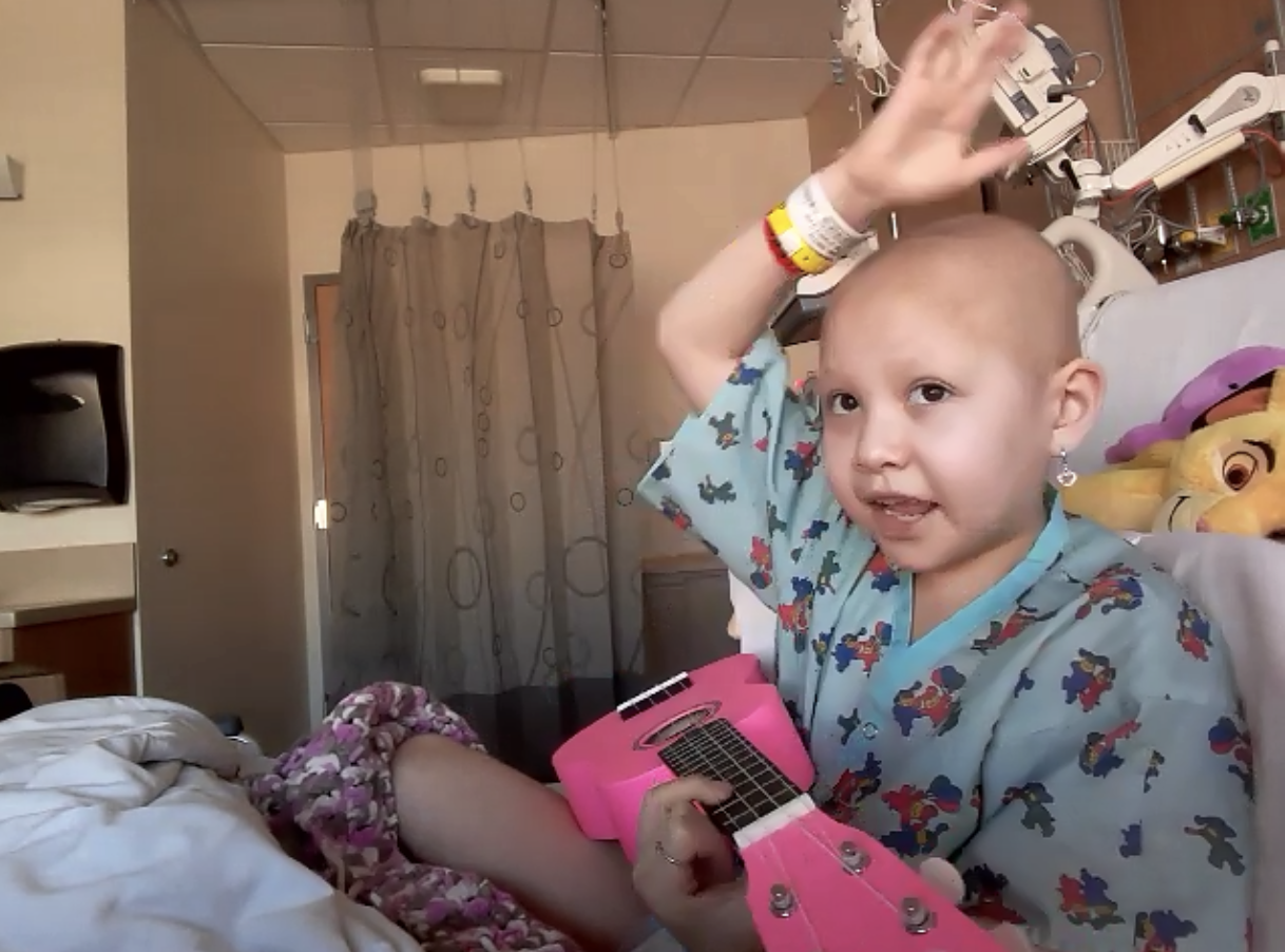 Meet CIENNA, she is seven years old, has the spirit of a warrior, plays the ukulele AND has stage 3 Diffused Large B-cell Lymphoma. Earlier this year Cienna started receiving treatment at UCSF Benioff Children’s Hospital. Her mom, Rachelyn, created a Facebook page to chronicle her journey: Cienna Crushes Cancer. Given that her home is in Humboldt County, some five and half hours from the hospital, Cienna, her dad, stepmom, mom, brother, and sister stay at Family House in San Francisco while she receives care.