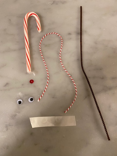 Now on to our Candy Cane Reindeer. It’s a very simple craft that you can make in a couple of minutes. You don’t need anything unusual and it’s very easy and handy so anyone can make it. To start with your Candy Cane Reindeer, you will need the following supplies: