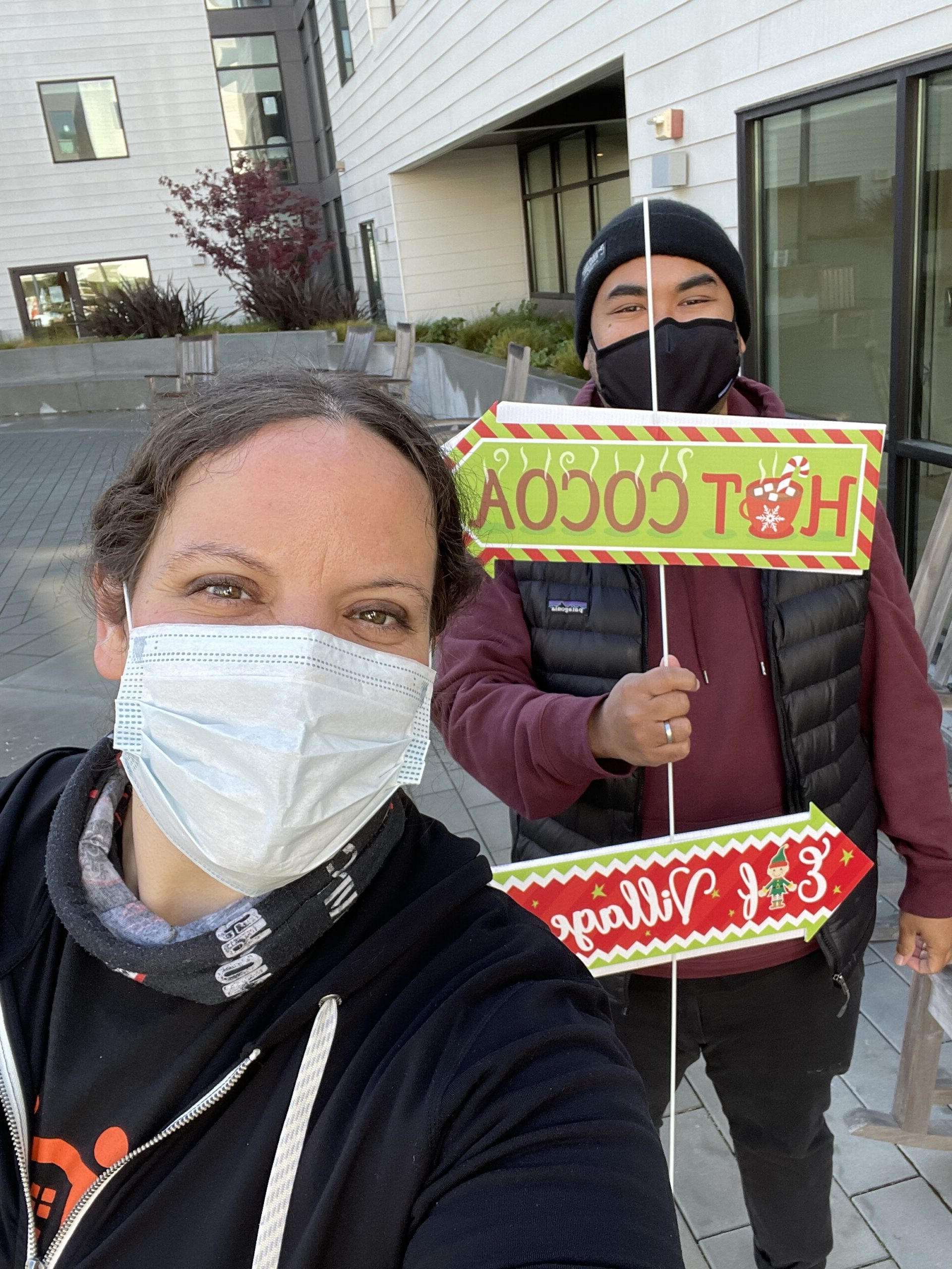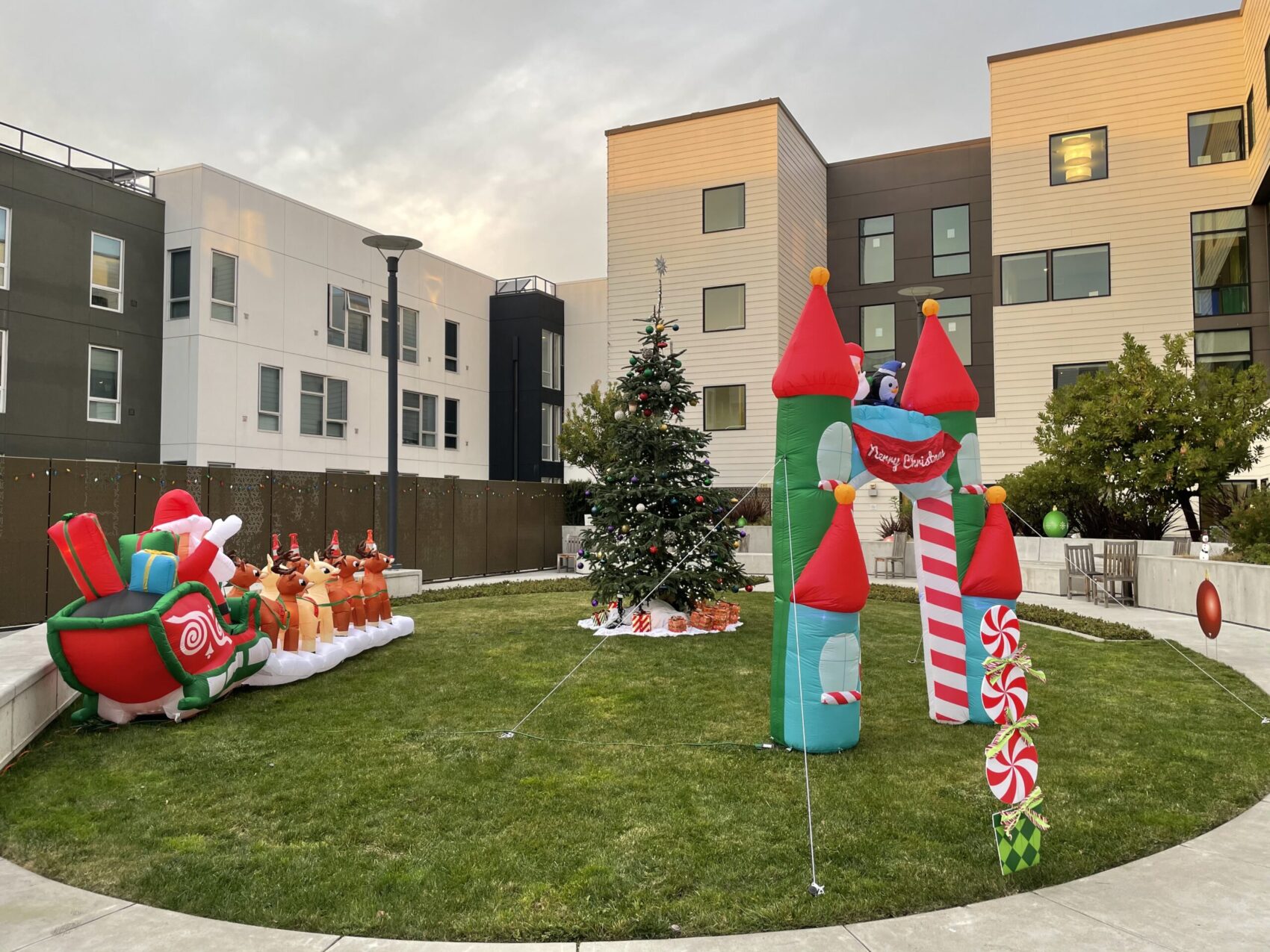 While you are visiting the spaces make sure to check out all of the beautifully lit trees throughout the area. Holiday lights are strung all the way from the 5th floor down and across the entire courtyard by Family House Director of Facilities, Ung Ly. The light magic is beautiful and really brings home the magic of Family House.