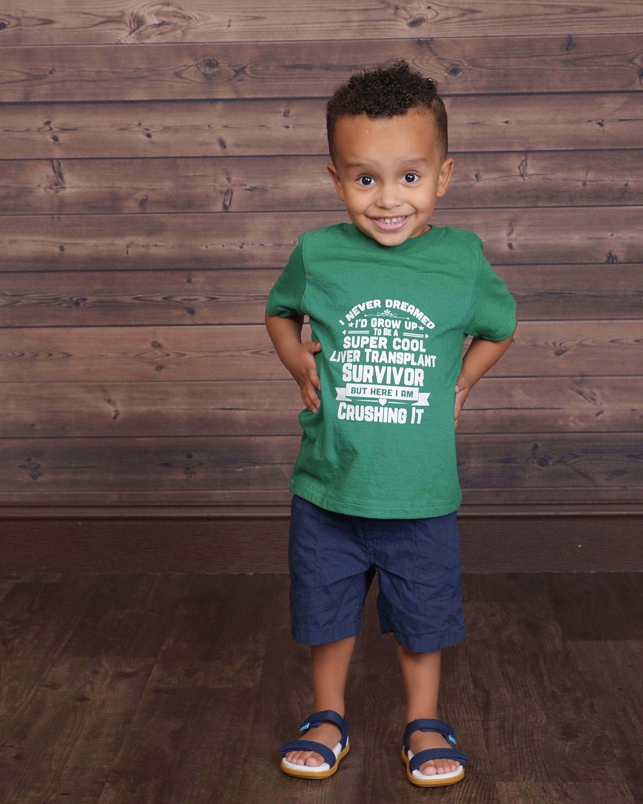 Kingston was 10 weeks old when he was diagnosed with biliary atresia, which is “ a rare condition in newborn infants in which the common bile duct between the liver and the small intestine is blocked or absent” according to UCSF Medical Center. After his Kasai (a surgical treatment performed on infants with Type IVb choledochal cyst and biliary atresia to allow for bile drainage) failed, he had his whole liver transplant at just 5 months old in October of 2019.